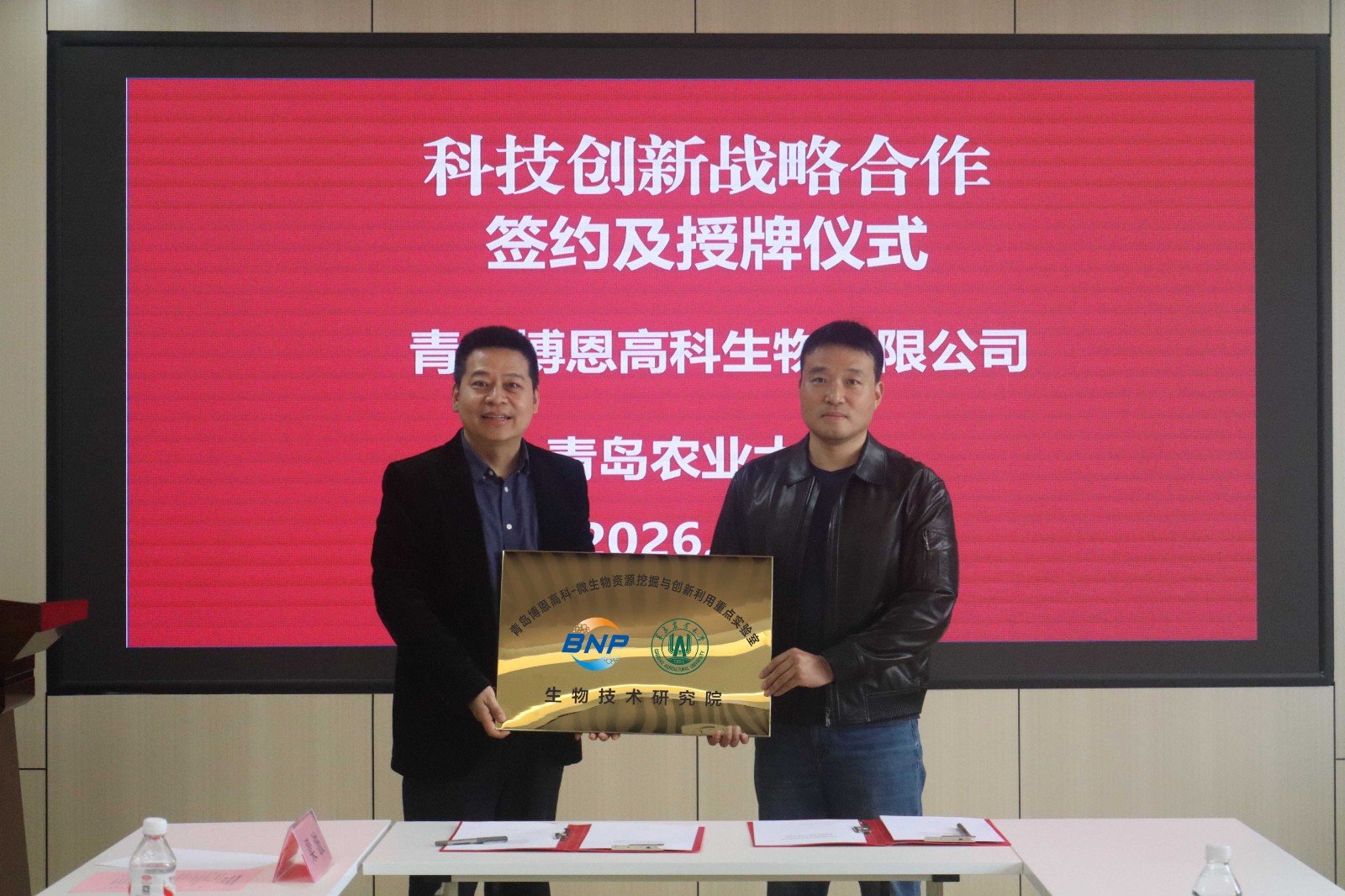 2026年3月27日下午,青岛农业大学生命科学学院与青岛博恩高科生物有限公司科技创新战略合作签约及授牌仪式,在学院会议室顺利举行。